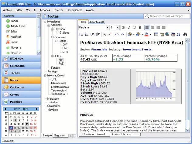 EssentialPIM est disponible en espagnol , il est compatible avec Windows 7 et sa dernière version EssentialPIM 3.21 Free peut être téléchargée à partir des liens suivants: