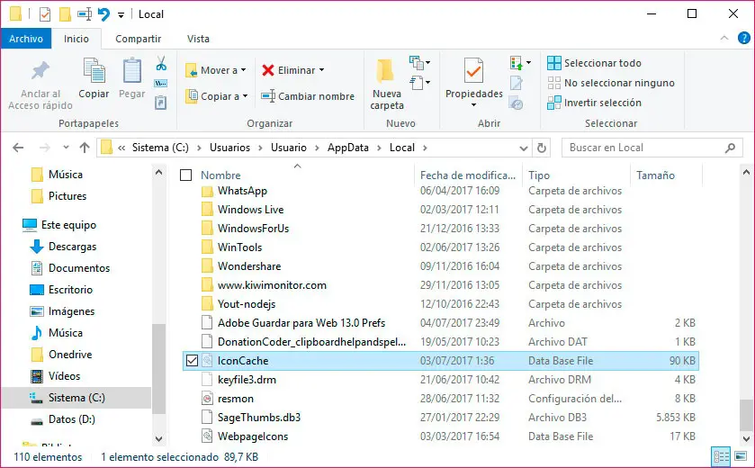 Si aún así notamos que en algunas ocasiones cuando reiniciamos Windows 10 los iconos del escritorio se vuelven a mostrar desordenados o se han movido, entonces tendremos que abrir una ventana del explorador de archivos de Windows 10 e ir hasta la ruta C:UsersnombreusuarioAppDataLocal y borrar el archivo IconCache.db. Para llegar hasta la ruta y ver el archivo, seguramente sea necesario mostrar las carpetas y archivos ocultos del sistema. Una vez hemos eliminado este archivo, podemos reorganizar nuevamente los iconos del escritorio y reiniciar el equipo para comprobar si siguen todos en su sitio y no se mueven.
