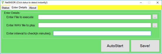 NetSNSOR est une application portable, elle ne nécessite donc pas d’installation et possède une interface très simple. Une fois que nous avons lancé l’outil, nous devons simplement indiquer le son que nous voulons qu’il émette et l’ intervalle de temps dans lequel il vérifiera la connexion Internet . L’application restera alors en cours d’exécution en arrière-plan et nous n’en entendrons de nouveau parler que si à tout moment nous perdons la connexion Internet.