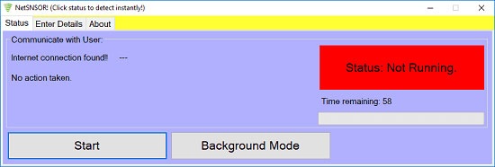 C’est une application qui s’exécute en arrière-plan et vérifie de temps en temps l’état de notre connexion Internet. Cet intervalle de temps est fixe et NetSNSOR vous permet de l’ajuster pour que l’utilisateur établisse à quelle fréquence il souhaite que sa connexion Internet soit vérifiée . Au moment où il détecte une panne ou une coupure dans la connexion, il émet un son pour informer l’utilisateur de la situation.
