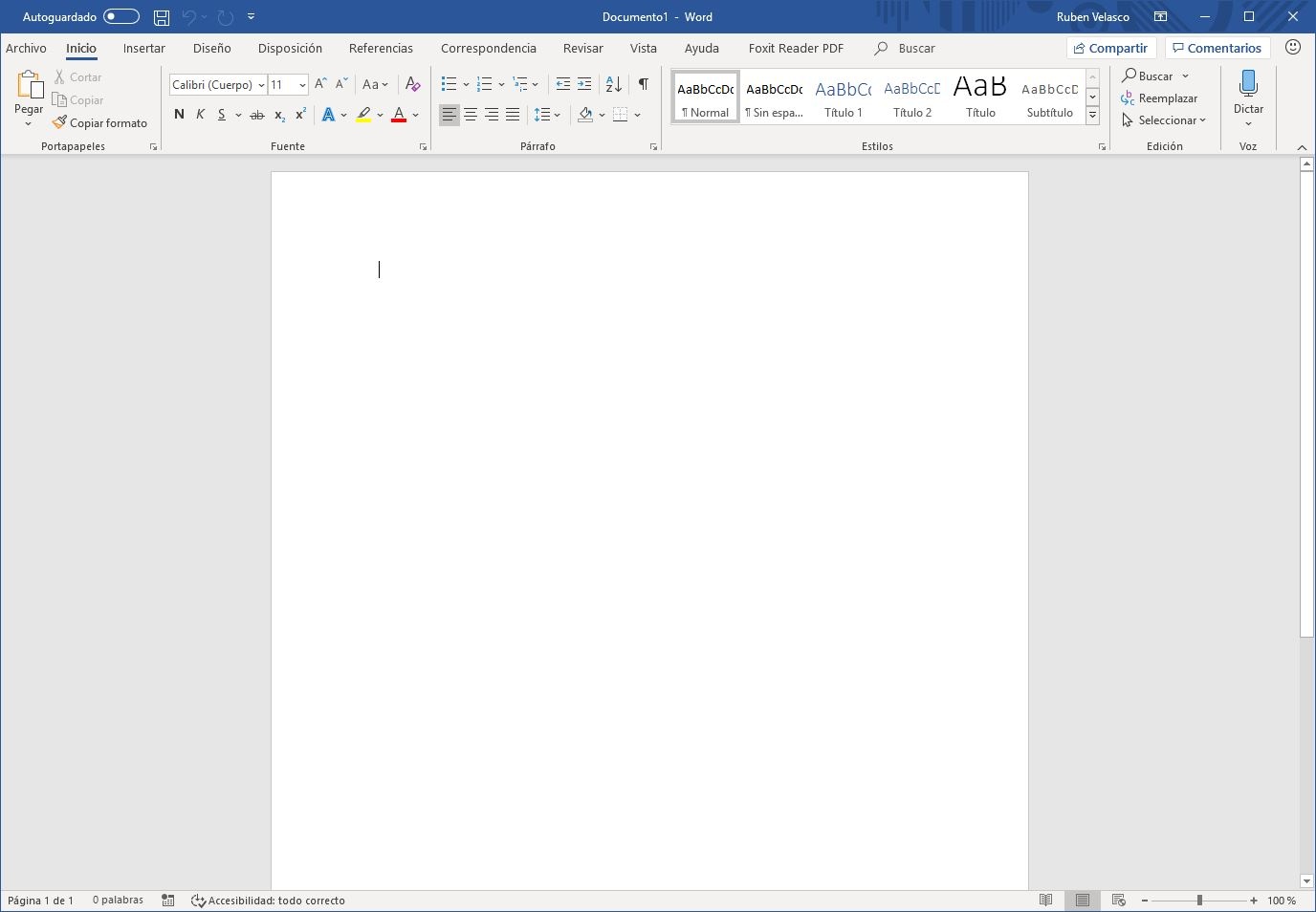 Comme nous pouvons le voir, la première option qui apparaît est un document vierge et, plus tard, tous les autres modèles inclus dans cet outil bureautique. Double-cliquez simplement sur « Document vierge » pour accéder à la création d’un nouveau document Word.