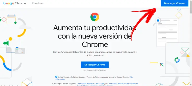 - Google Chrome , qui est utilisé par la grande majorité des utilisateurs. Accédez à l’URL https://www.google.com/intl/es-419/chrome/ et téléchargez-la gratuitement.