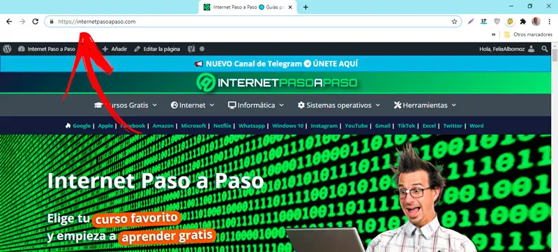Par exemple, vous devrez écrire Internet étape par étape puis cliquer sur la loupe ou sur le bouton Rechercher . Après quelques millisecondes, vous verrez une liste avec les meilleures options, choisissez l’une d’entre elles pour accéder à un site Web. Dans ce cas, si nous continuons avec l’exemple, vous cliquerez sur le premier résultat et vous accéderez à notre page dont l’URL est https://www.internetpasoapaso.com, que vous verrez en haut de l’écran.