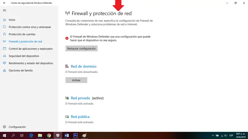 Maintenant, il est important de limiter le pas à pas à effectuer pour réactiver le pare-feu en question . De cette manière, nous détaillons ici ce que vous devez faire: