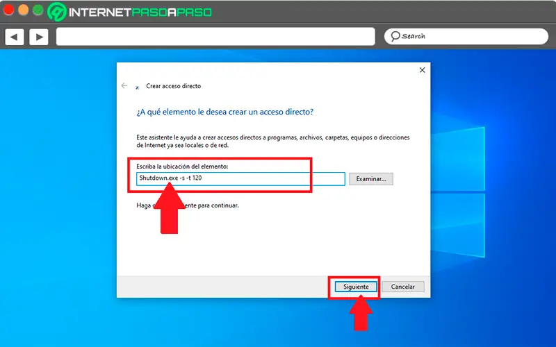 - Cependant, à cette occasion, la commande suivante doit être écrite «Shutdown.exe -s -t XXX» dans ce cas le XXX doit être changé de la quantité de seconde à programmer, par exemple, ce serait comme suit: » Shutdown.exe -s -t 120 ” cela signifie qu’il sera arrêté deux minutes après avoir cliqué sur le raccourci .