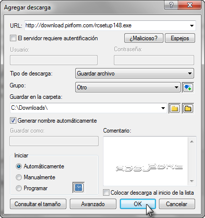 Cette option est idéale si nous téléchargeons des fichiers à partir, par exemple, d’un FTP.