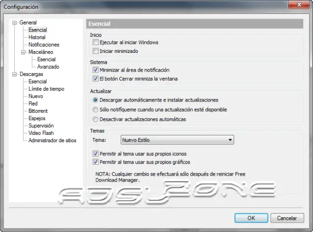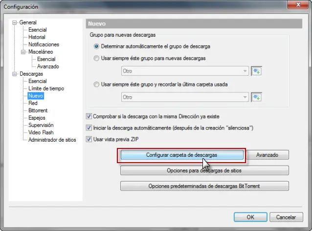 Pour configurer le gestionnaire de téléchargement, nous accèderons depuis le menu des options ou depuis l’icône d’une roue dentée dans la barre proposée par le programme.