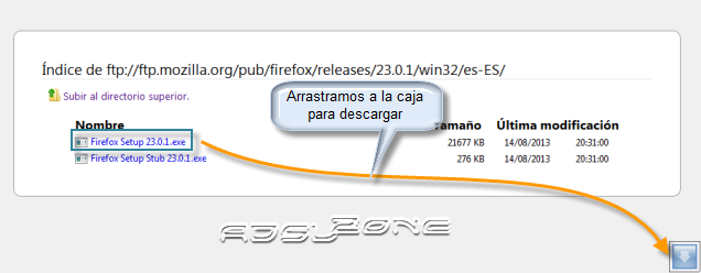 L’une des fonctionnalités les plus intéressantes de Free Download Manager est la possibilité de télécharger des fichiers par glisser-déposer. Pour ce faire, nous sélectionnons le fichier souhaité et le faisons glisser sur l’icône de la boîte de dépôt.