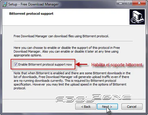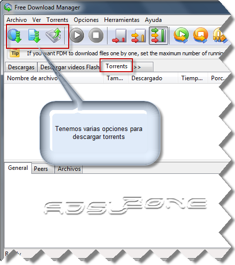 Comme nous l’avons commenté au début du manuel. Free Download Manager vous permet de télécharger des fichiers torrent en utilisant le protocole bittorrent tant que nous avons activé cette option lors de l’installation.