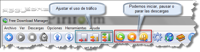 Une fois qu’un ou plusieurs téléchargements ont commencé, nous pouvons les mettre en pause ou les arrêter et les démarrer. Nous pouvons également ajuster l’utilisation du trafic, pour allouer toute la bande passante de notre connexion au téléchargement de fichiers ou si nous souhaitons pouvoir naviguer couramment.