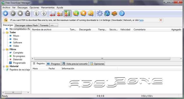 Une fois l’assistant terminé, l’écran principal de Free Download Manager en espagnol apparaîtra.