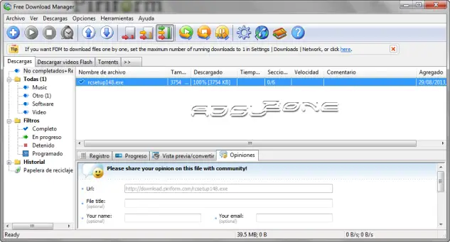 Ci-dessous, nous vous proposons un tutoriel du programme où nous verrons les principales fonctions de cet excellent gestionnaire de téléchargement gratuit, avec lequel nous optimiserons la vitesse de téléchargement de fichiers que nous effectuons sur Internet.