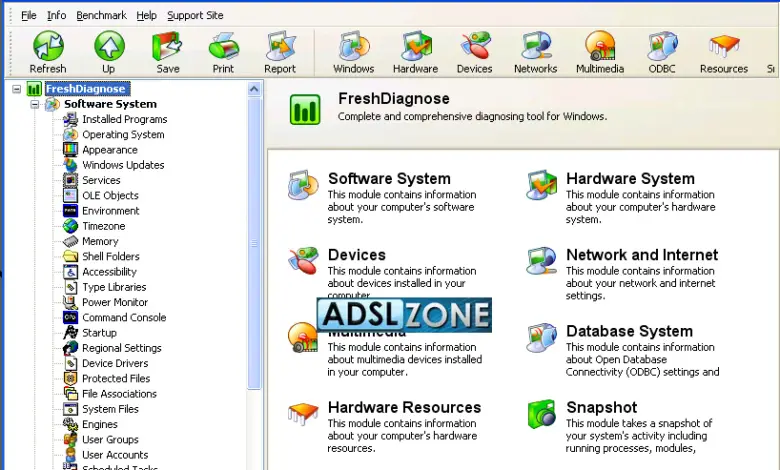 Fresh Diagnose , nous montrera la température des cœurs du processeur , la vitesse du ventilateur, le VGA, les lecteurs optiques, les bus et périphériques, la carte réseau, il nous permettra même de mesurer les performances (benchmark) de certains composants matériels , tels que la RAM, le disque conduire , etc. Il nous montrera également les pilotes installés, les mises à jour, les comptes d’utilisateurs , les associations de fichiers, l’accessibilité, les programmes qui commencent par le système, etc.