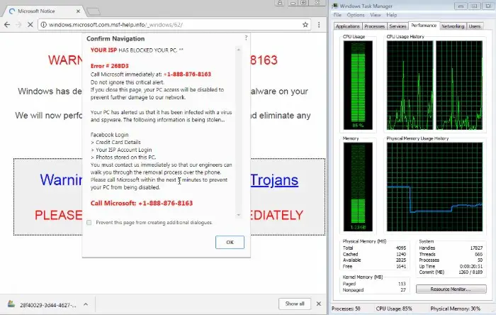 Cette faille de sécurité ne pose aucun danger pour nos données ou notre vie privée, c’est simplement une technique qui permet à l’ingénierie sociale d’être beaucoup plus efficace. Lorsque la victime arrive sur la page Web typique d’un faux support technique , une page qui indique généralement que nous avons des dizaines de virus ou un problème très grave sous Windows et nous invite à appeler un numéro pour le résoudre, le script caché est exécuté dite page pour exploiter cette faille et faire en sorte que le navigateur consomme 100% du processeur, rendant la page de virus ou d’erreurs beaucoup plus crédible.