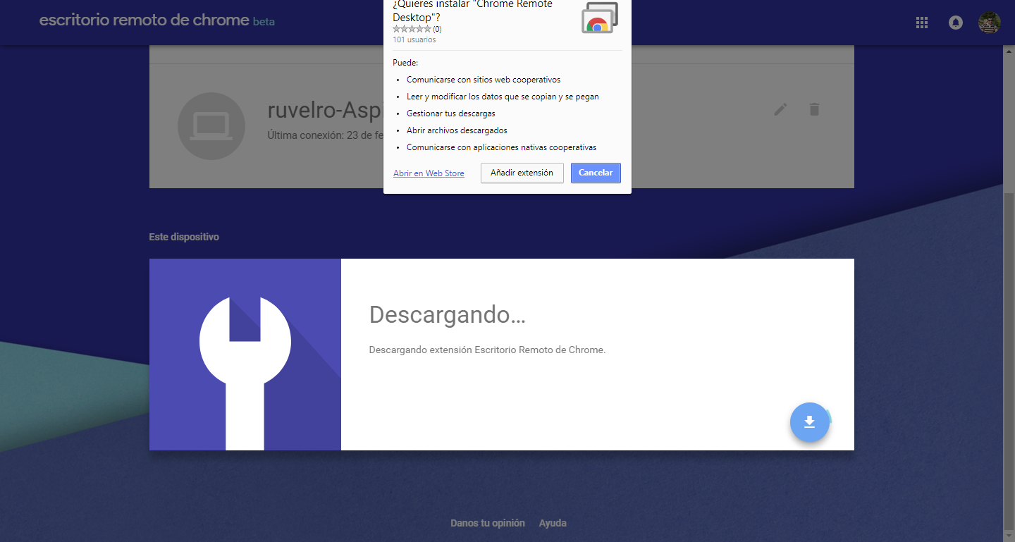 Une fois l’extension installée, notre ordinateur sera prêt à être contrôlé à distance.