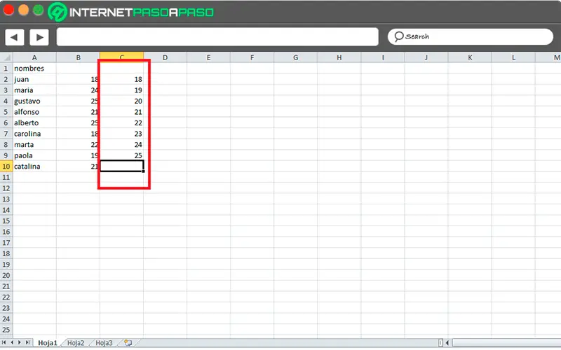 - Dans ce cas, la gamme des âges collectés est connu, qui est entre 18 et 25 ans, si la colonne C peut être saisie manuellement.