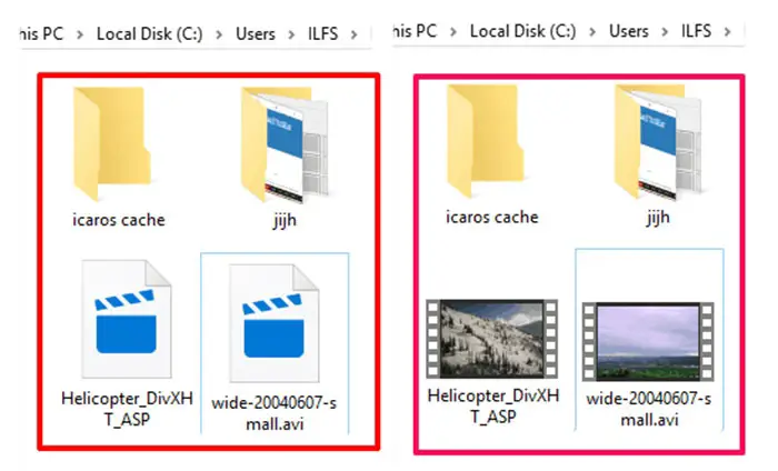 Pour résoudre ce problème dans l’ Explorateur de fichiers Windows , il existe une application appelée Icaros , qui vous permet de visualiser des images miniatures de presque tous les types de fichiers vidéo et audio , quel que soit leur format. Il peut même afficher la vignette des fichiers incomplets.