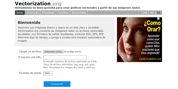 Online-Convert est l’un des sites Web les plus populaires aujourd’hui, il est principalement basé sur la conversion gratuite de tous types d’images dans n’importe quel format. Cependant, il fonctionne parfaitement avec les vecteurs , ce qui en fait un très bon outil en ligne pour travailler avec ces types d’images.