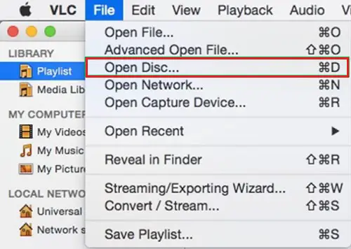 - Dans l’interface VLC (par exemple), cliquez sur le bouton dans le coin supérieur gauche «Média» puis choisissez l’option «Ouvrir le disque».
