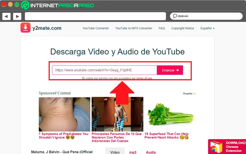 - Entrez maintenant Y2mate et vous y trouverez une boîte où vous devez insérer le lien URL copié précédemment.