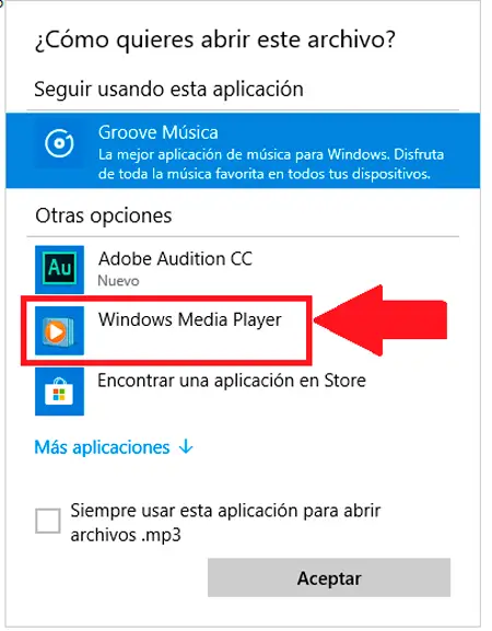- Maintenant, ouvrez le dossier où se trouve la chanson et double-cliquez dessus, sélectionnez ouvrir avec «Windows Media Player» et dans quelques secondes l’audio sera lu sur votre PC .