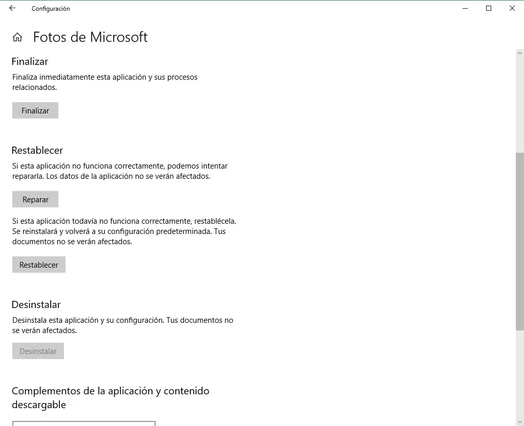 Desinstalar y reinstalar la app Fotos en Windows 10