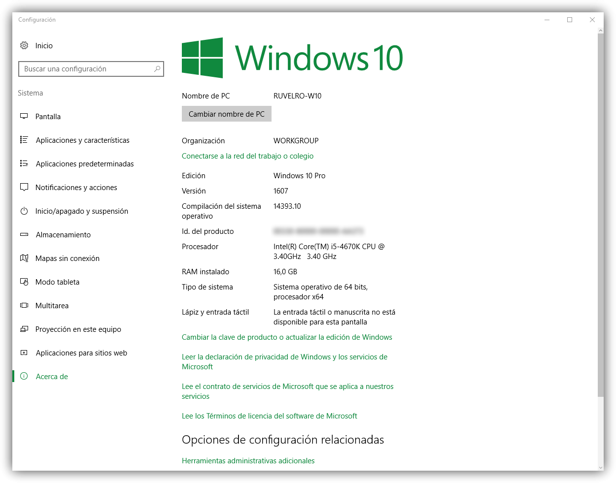 Si nous avons la version 1607 (Anniversary Update), nous n’avons pas à nous inquiéter. Si notre version est différente, il est conseillé de mettre à jour vers cette dernière afin de tirer le meilleur parti de Windows 10 et, en plus, de préparer notre Windows 10 à l’arrivée de la Creators Update.