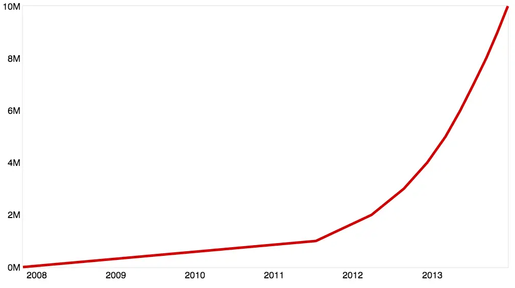 Comme nous l’avons dit, le premier million a mis plus de 3 ans à atteindre et, passer de 9 millions à 10 millions de référentiels a été réalisé en seulement 48 jours , ce qui témoigne de l’intérêt particulier des développeurs pour le logiciel libre, notamment à la fin de cette année 2013.