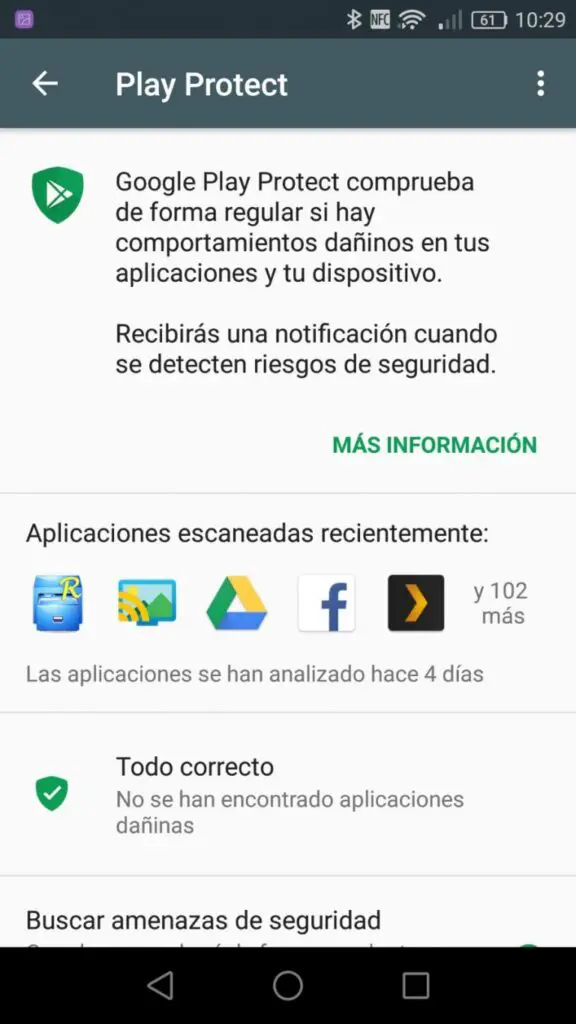 Android a un antivirus installé par défaut ( Google Play Protect ), en plus des fonctions de localisation du mobile perdu, donc, comme dans iOS, l’antivirus pour Android n’utilise que de la mémoire, des ressources et beaucoup de batterie.