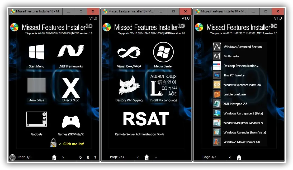 Entre autres, les principales fonctionnalités que le programme d’installation de fonctionnalités manquées 10 nous offre sont: