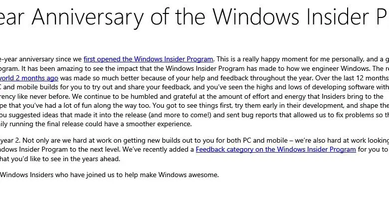 À tout cela, nous devons ajouter qu’au cours de cette année, 27 aperçus ont été publiés , non seulement de Windows 10 pour ordinateur de bureau mais aussi de sa version pour téléphones mobiles et, dans tous, cela a été vu comme le retour d’expérience entre l’entreprise et le testeurs, il a été assez positif. Le dernier test que nous avons eu hier, lorsque des améliorations Edge ont été demandées par les utilisateurs de Windows Insider eux-mêmes.