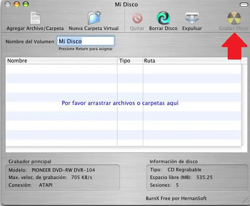 - Produit un dossier d’enregistrement : via les options du Finder, entrez » Fichier / Nouveau dossier d’enregistrement «. De cette façon, le système créera un dossier dans la même fenêtre du Finder dans laquelle vous vous trouvez et c’est là que vous devez faire glisser tous les fichiers que vous souhaitez générer sur le CD. Ensuite, appuyez sur le bouton » Graver » situé en haut à droite ou vous pouvez même l’enregistrer et le faire plus tard lorsque vous êtes prêt à enfin graver le disque.