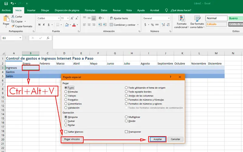 De cette manière, il sera essentiel de répartir les tableaux de manière ordonnée dans les espaces disponibles et sur les feuilles de documents . Les formules seront réduites à celles mentionnées précédemment et nous n’utiliserons que la fonction spéciale coller .