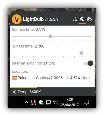 Une autre alternative à F.Lux et au filtre Windows pour réguler la température de couleur de notre ordinateur et ainsi réduire la couleur bleue à l’écran est Lightbulb. Cette application est open source, et c’est l’une des alternatives les plus fidèles à F-Lux, tant en fonctionnement qu’en fonction puisque, sans impact sur les performances de l’ordinateur, on peut configurer les temps d’activation et de désactivation de ce filtre (aussi bien comme un raccourci clavier pour le même) en plus d’avoir un grand nombre d’options de personnalisation pour ajuster le filtre à notre guise.