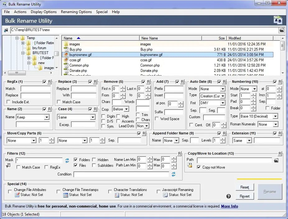 Enfin, si nous voulons une option beaucoup plus complète qui remplisse cette tâche, nous pouvons jeter un œil à l’ utilitaire Bulk Rename . Cette application est gratuite (pour un usage domestique) et elle nous permettra de renommer tous types de fichiers selon une série de règles très flexibles, pouvant ajouter ou supprimer pratiquement tout type de contenu à nos fichiers ou dossiers.