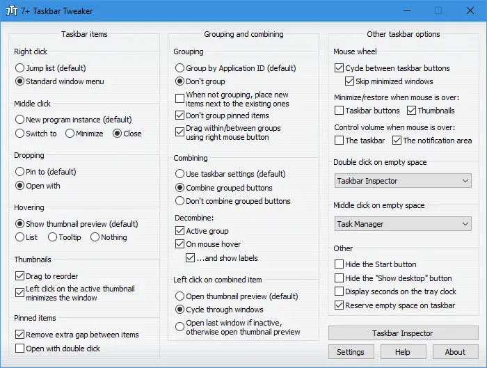 C’est un outil qui offre de nombreuses options pour personnaliser et ajuster le fonctionnement de la barre des tâches Windows. Vous permet de modifier la disposition des boutons et des options de la barre des tâches, d’ajouter de nouveaux raccourcis, de masquer ou d’afficher le bouton du menu Démarrer, etc. Il est compatible avec n’importe quelle version de Windows à partir de Windows 7. Téléchargez 7 + Taskbar Tweaker.