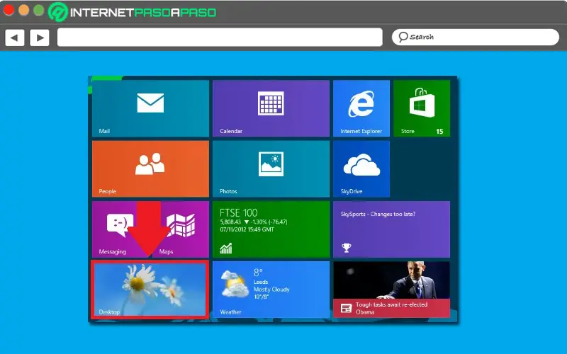 Une autre invention qui est observée dans Windows 8 , fait référence au bureau du système d’exploitation. Eh bien, dans cette version, vous ne vous connectez pas directement à cette section du PC , mais vous obtenez la vue Démarrer qui contient les Live Tiles des programmes que vous décidez d’y ancrer. Cependant, cela ne signifie pas que le bureau du système d’exploitation a complètement disparu comme cela s’est produit avec le bouton Démarrer.