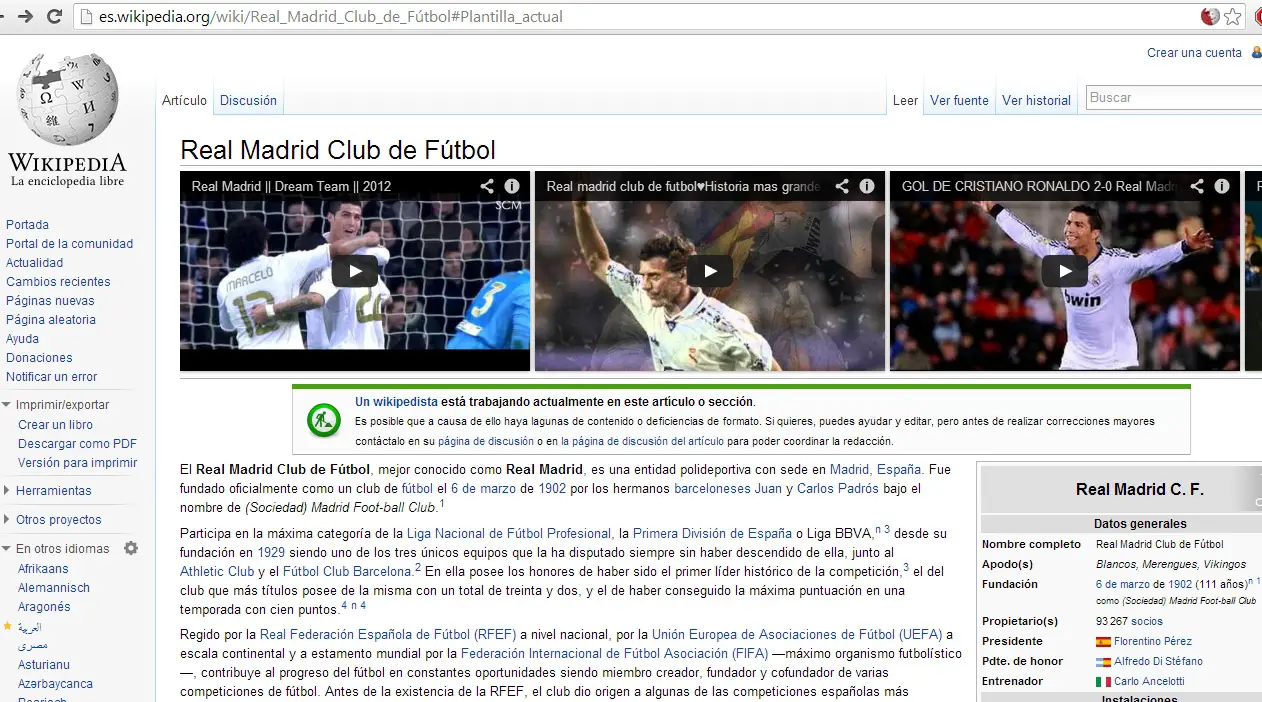 Il faut admettre que c’est très bien pensé. Si nous entrons dans des pages liées à la technologie, WikiTube nous montrera des tutoriels liés au sujet. Si nous allons sur les pages des équipes de football, l’extension nous montrera leurs objectifs et si nous allons sur la page des groupes de musique, nous pourrons écouter leur musique pendant que nous lisons leur histoire.