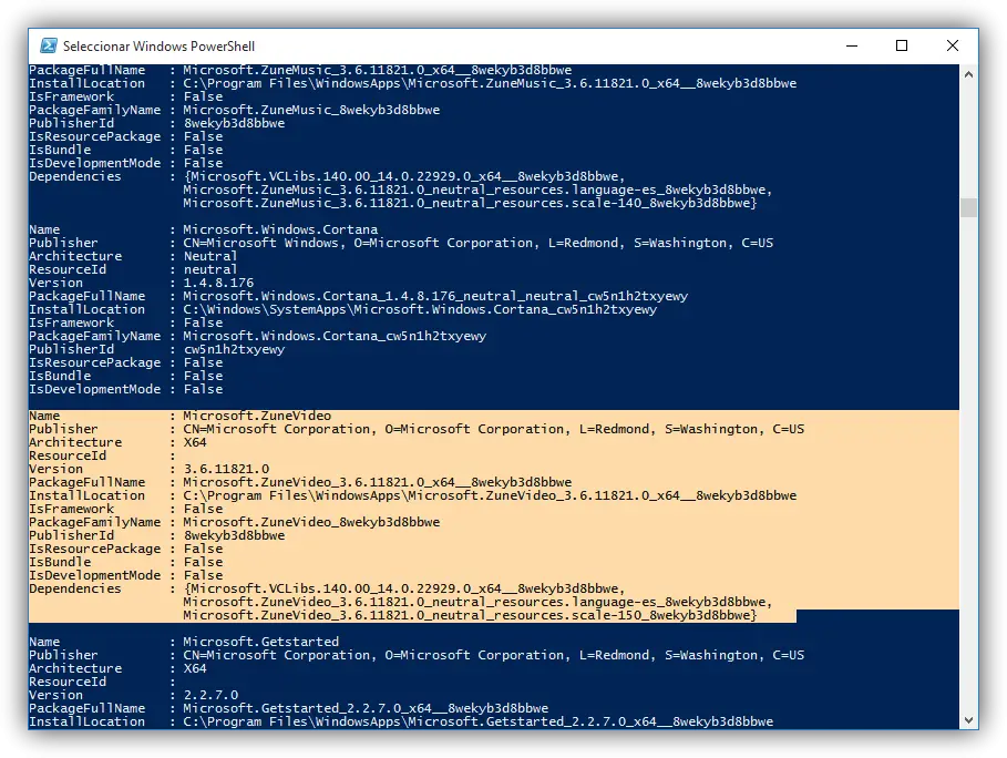 - Remove-AppxPackage Microsoft.ZuneVideo_3.6.11821.0_x64__8wekyb3d8bbwe