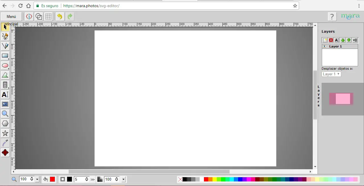 Ainsi, comme s’il s’agissait d’une application de bureau, nous verrons comment l’éditeur Mara Photos s’affiche dans le navigateur. La vérité est que l’éditeur, en enregistrant les différences, est organisé d’une manière très similaire à Photoshop. Un canevas au centre de l’interface est l’endroit où les images à traiter sont affichées, tandis que la barre d’outils est affichée à gauche .