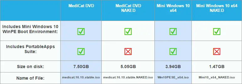 - La version Mini Windows 10 Naked qui est, encore une fois, la même que la précédente, mais sans les applications portables.