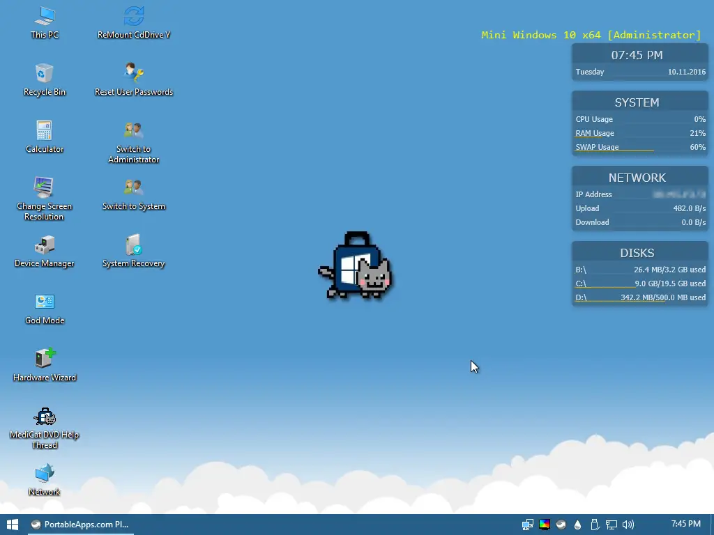 - Mini Windows 10, un DVD contenant Windows 10 WinPE et des applications portables.
