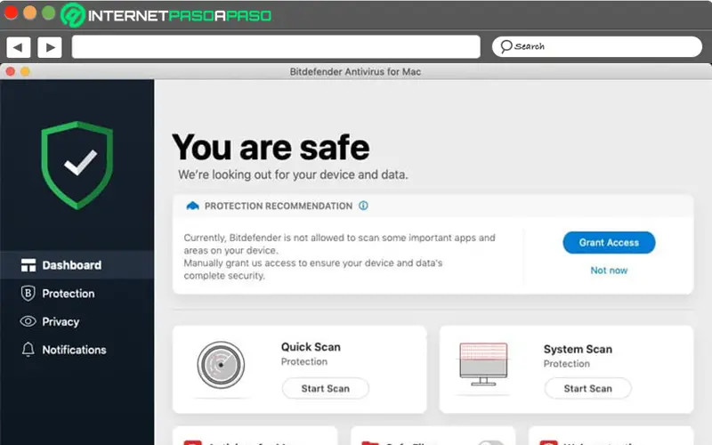 De son côté, ce logiciel Mac est également parfait pour les personnes qui achètent constamment en ligne , car il est très utile pour protéger ces processus liés au Web. En plus de cela, il se caractérise par une mise à jour constante (toutes les heures) des définitions de logiciels malveillants avant de lancer une analyse et a une opération automatique, car il procède à la désinfection rapide de l’ordinateur et à la mise en quarantaine des fichiers suspects. Ainsi, il peut facilement reconnaître toute menace provenant des fichiers RAR, ZIP, PDF et PKG.