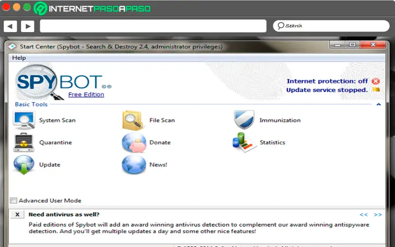 Spybot est un spécialiste des virus, chevaux de Troie , logiciels malveillants et autres dangers pouvant affecter les performances de votre ordinateur. De plus, il dispose d’une version portable connue sous le nom de Spybot – Search & Destroy Portable , un programme que vous pouvez transporter directement vers votre mémoire externe et l’utiliser sur n’importe quel ordinateur de manière très simple, cela vous permettra de protéger vos données n’importe où.