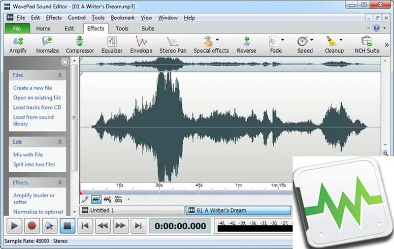 Disponible pour les systèmes d’exploitation Windows et Mac, le programme d’édition audio WavePad Sound Editor vous permet de l’utiliser gratuitement tant que vous l’utilisez à des fins non commerciales . Vous pouvez travailler avec différents formats de fichiers audio en même temps, ce qui rend le travail plus intéressant. Si vous l’utilisez à des fins commerciales, vous devrez acheter la licence, dont nous parlerons ci-dessous.