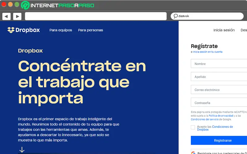 En outre, si vous téléchargez les fichiers d’image à partir du Web, la limitation pour chaque photo est de 300 Mo . Mais, dans le cas où vous choisissez d’installer son application sur l’un de vos ordinateurs et / ou appareils, il n’y a pas de telle limite. Parmi les autres avantages généraux de Dropbox pour le téléchargement d’images sur le réseau, nous trouvons qu’il offre une grande facilité de gestion et une grande simplicité , ce qui le rend idéal pour tous les types d’utilisateurs. Mais, pour tout cela, vous devrez vous inscrire.