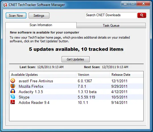 Le grand atout de CNET TechTracker est qu’il possède l’un des sites Web les plus importants au monde en matière de téléchargements . Grâce à cela, il met à disposition de l’utilisateur une gigantesque base de données qui garantit la couverture des mises à jour de la grande majorité des applications et outils qui existent actuellement. Après la numérisation, autorisez le téléchargement direct pour accélérer le processus.