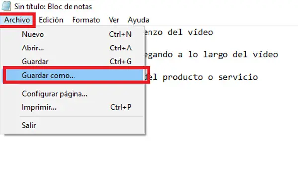 - Une fois le fichier terminé, vous devrez l’enregistrer au «Format SRT». Pour ce faire, entrez «Fichier» puis «Enregistrer sous».