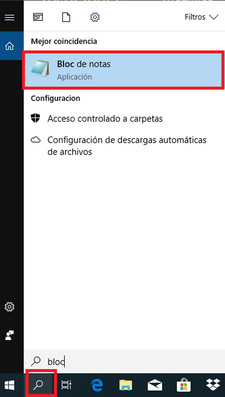 - La première chose à faire est d’ouvrir le «Bloc-notes», pour cela vous devrez sélectionner le «Windows Finder» situé dans la barre Windows.