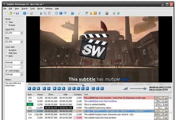 Vous pouvez télécharger cet outil entièrement gratuitement et qui vous permettra d’ éditer les sous-titres via une interface très simple d’utilisation. Subtitle Workshop se distingue par sa compatibilité avec un grand nombre de formats de sous-titres tels que ASS, SRT, DKS, SCR, SUB, entre autres.
